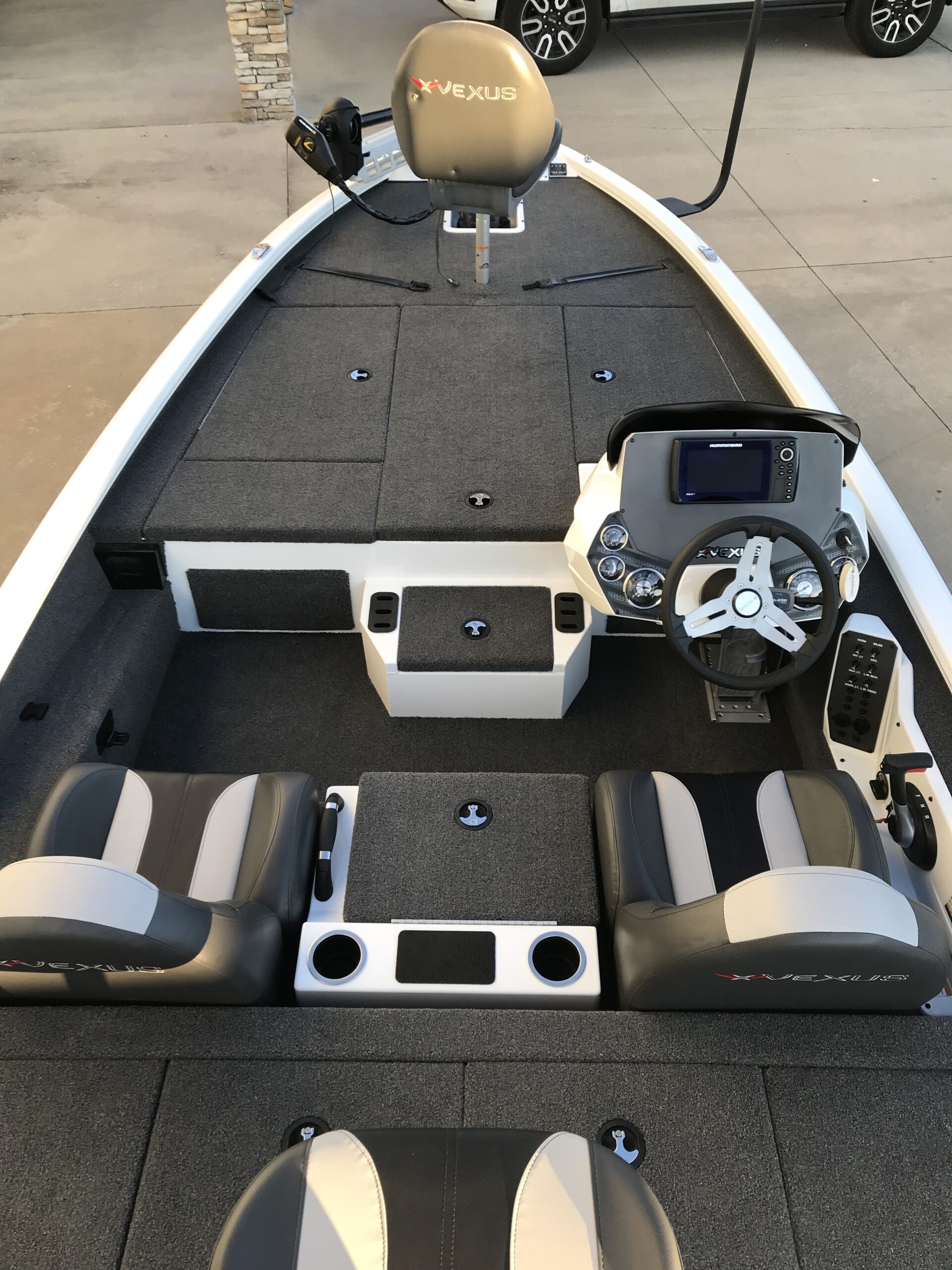 Built around stretch-formed gunnels, the entire rig carries the look, feel, space, quietness, and comfort often reserved for larger fiberglass boats. The high performance V2 pad hull makes an equally large statement with its computer-modeled lifting strakes, integrated spray rails, and rough-water-ready, V entry. Combined with SeaStar™ Pro hydraulic steering, this rig is light on its feet while touting an incredibly smooth ride and responsive handling. Inside, rod and gear storage abound, featuring raised lips and rubber trim seals for optimum water resistance. The cockpit is roomy with speed, tach, fuel, trim, and water pressure instrumentation. There’s also a choice of seating configurations as well as your preference of outboard and electronics.